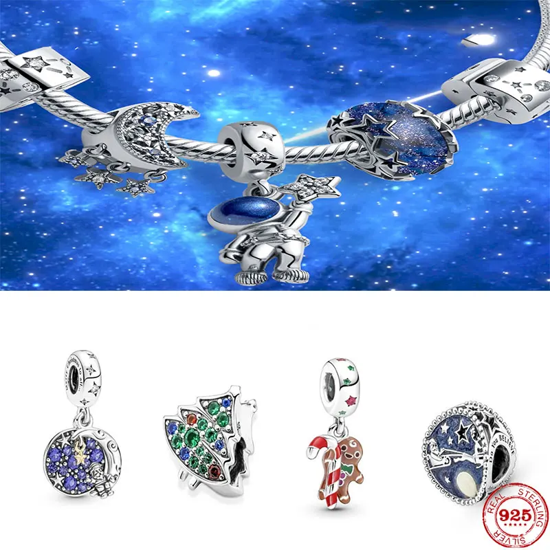 Серебро 925 пробы, подходит для оригинального браслета pandora, Санта-Клаус, с рождественскими подарками, серебряные подвески, бусины