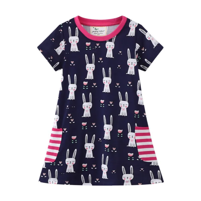 Детские школьные платья Jumping Meters, летняя хлопковая одежда для девочек, милая детская туника с принтом животных, платья с коротким рукавом