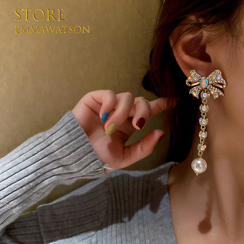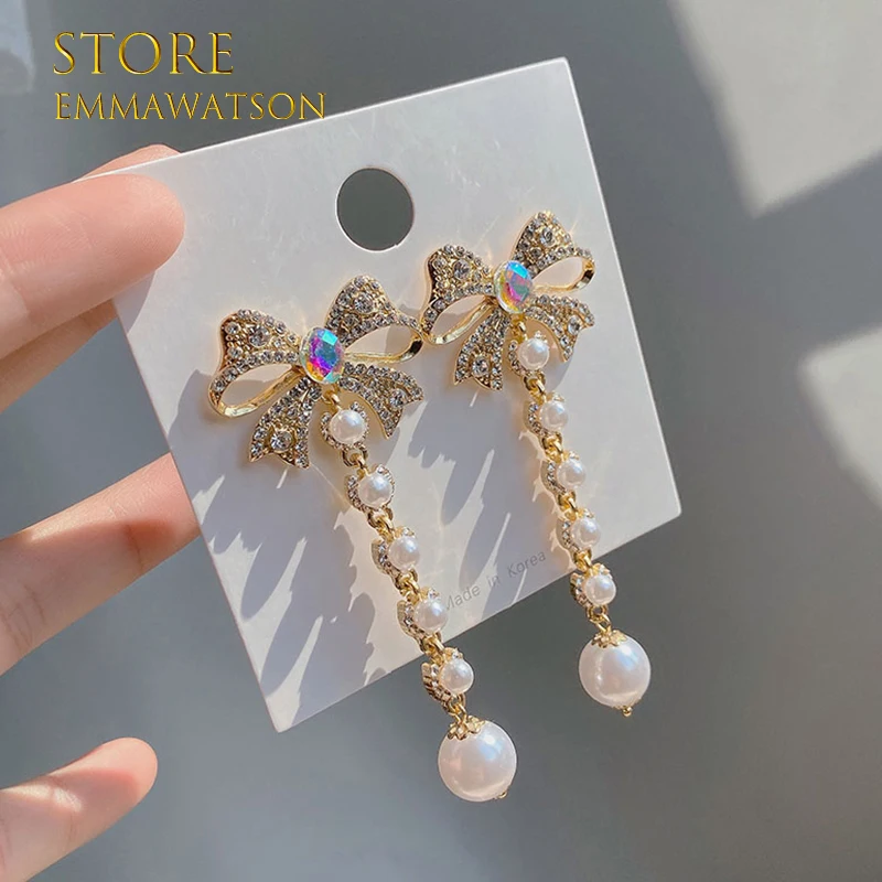 Модные висячие серьги с бабочкой бантом и кисточками для женщин, винтажная бижутерия вечерние Ринок и свадеб, трендовые длинные висячие серьги