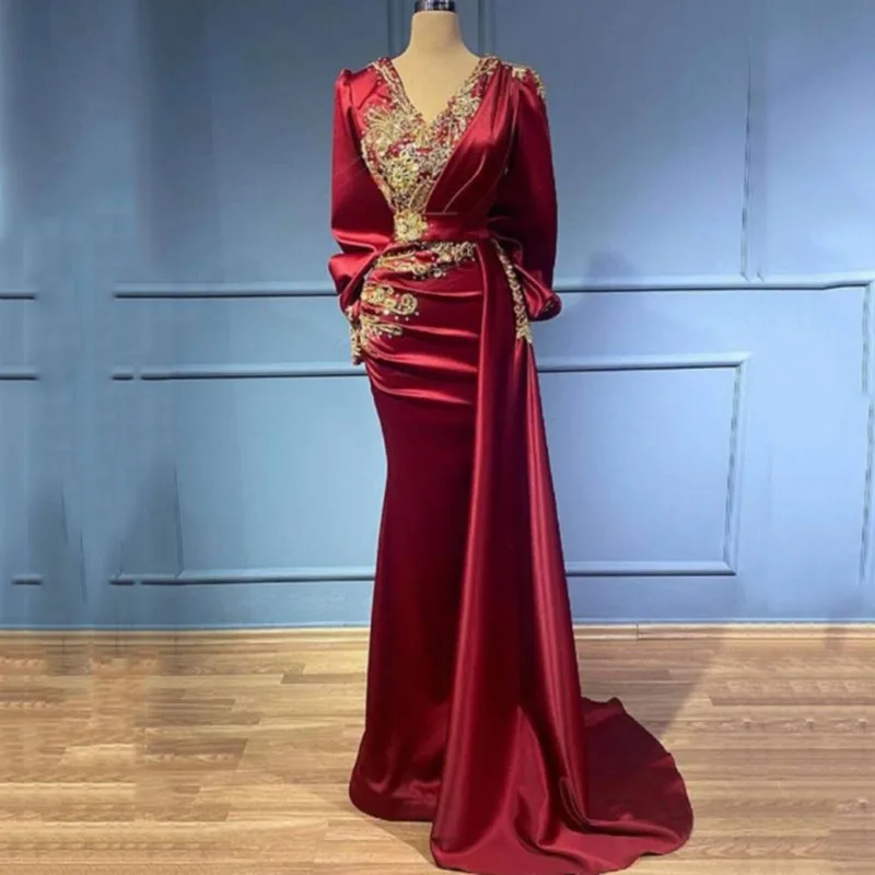 Женское вечернее платье с длинным рукавом sodign, красное кружевное платье с аппликацией и V-образным вырезом, современное сексуальное платье в африканском стиле для выпускного вечера
