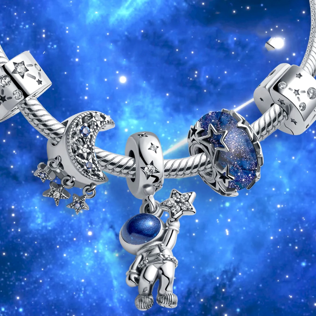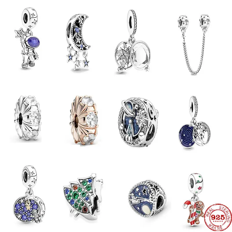 2021 Стерлинговое Серебро 925 пробы, серия Galaxy, астронавт, Рождественская елка, бусины, подходят для оригинального браслета Pandora для женщин, ювелирные изделия, подарок