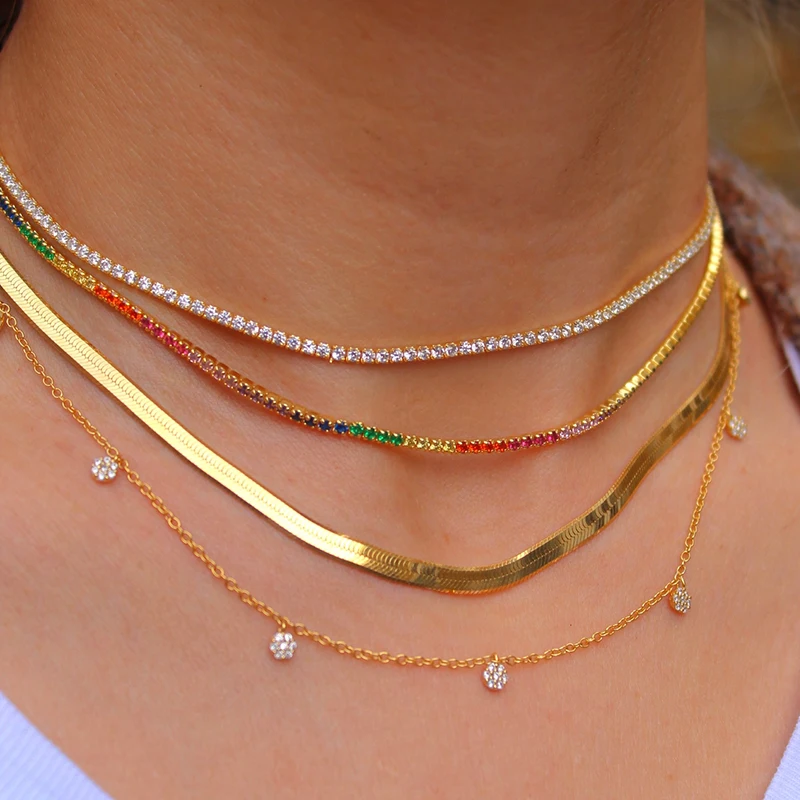 Цепочка-чокер Женская длиной до ключиц с разноцветным Цирконом