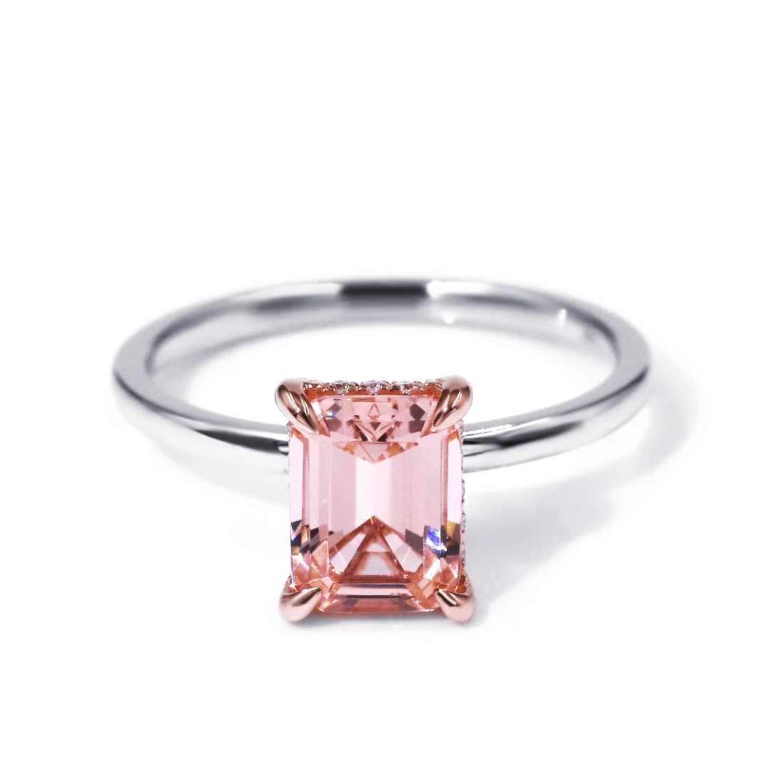 Product nameTianyu Gems 14K 585 White Gold Ring Rose Claw Emerald Cut Pink Spinel