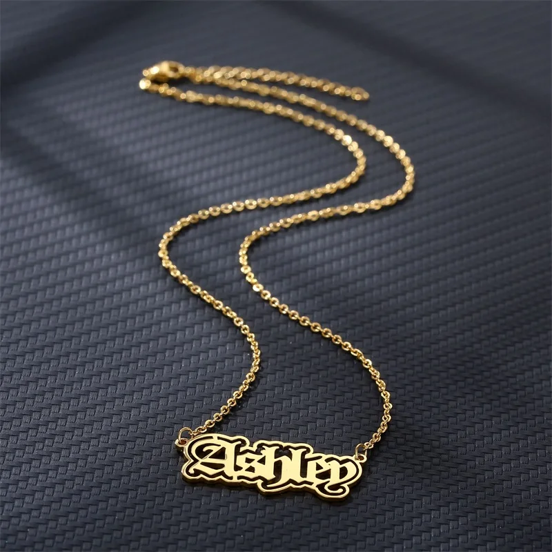 Ожерелье с именем на заказ из нержавеющей стали с золотым наполнением