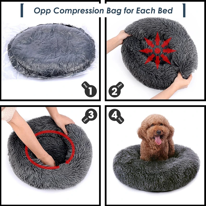 Эта круглая кровать для домашних животных в форме бублика очень удобная и просторная для вас собака или кошка.