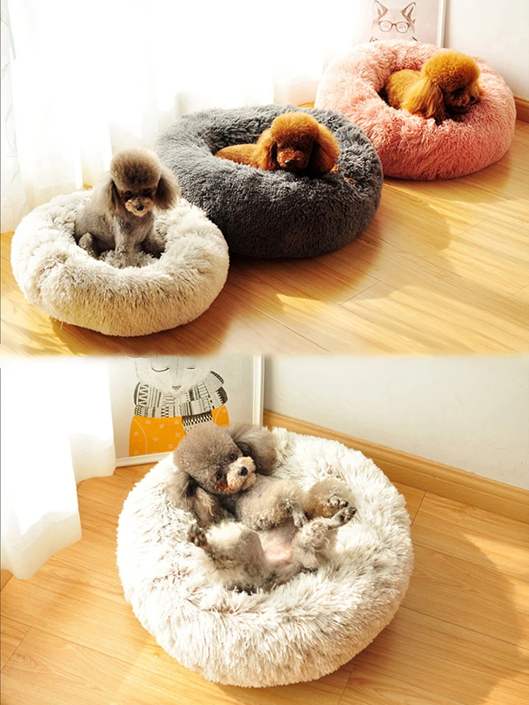 Супермягкая кровать для питомца, круглая теплая зимняя кровать для ...