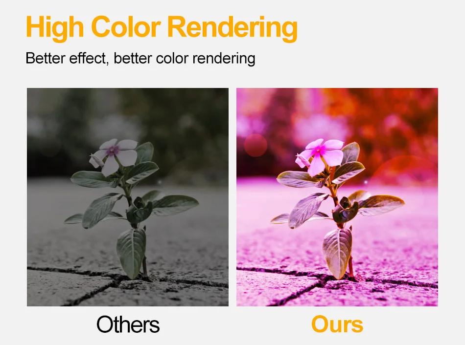 Полный спектр, который необходим и необходим для роста растений и цветения (от посева до сбора урожая). -Цвет ускоряет рост листьев, растений, цветов и овощей и способствует цветению;