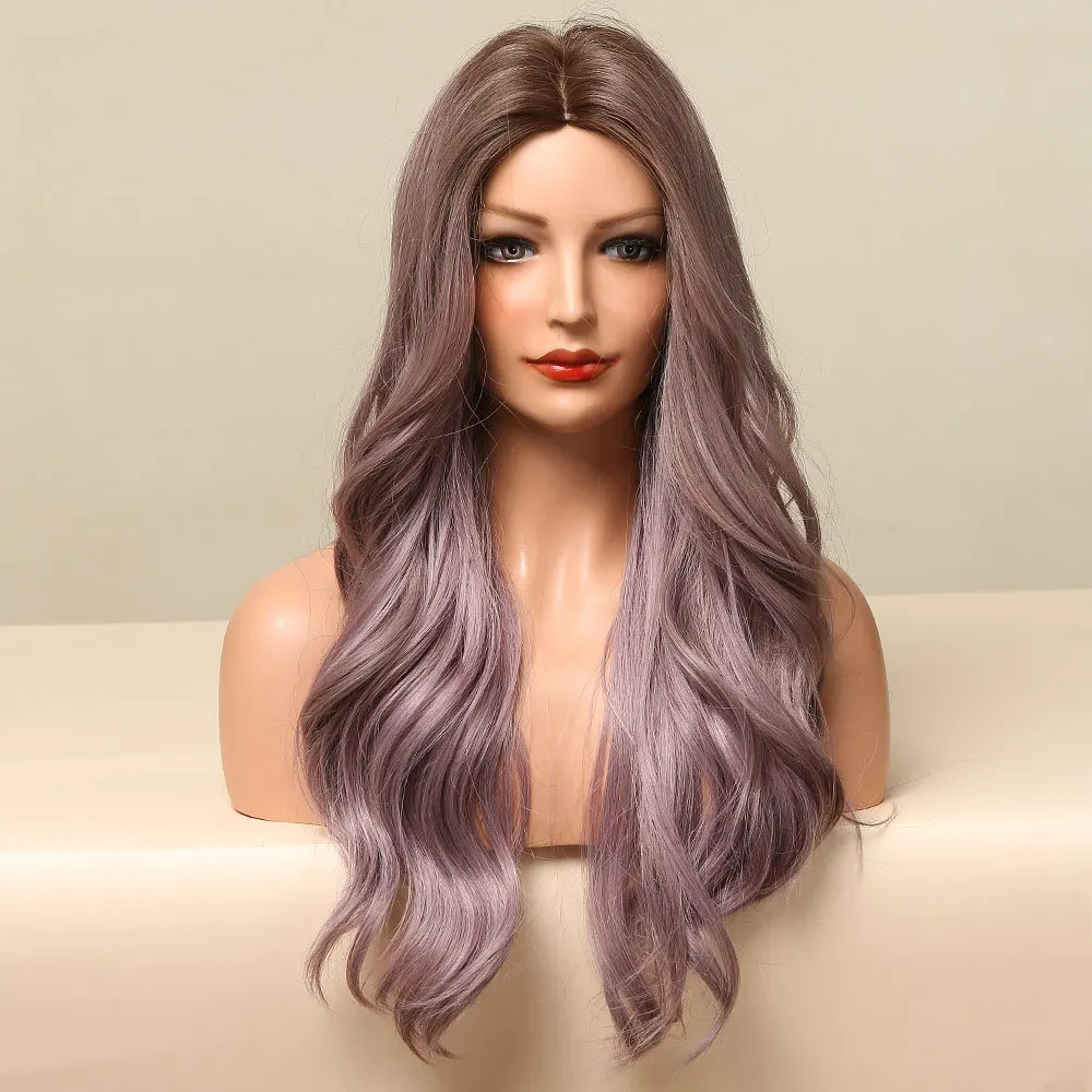 AOOSOO 24 дюйма длинный волнистый синтетический средней точки фиолетовый подчеркивающий парик женский термостойкий парик в европейском и американском стиле