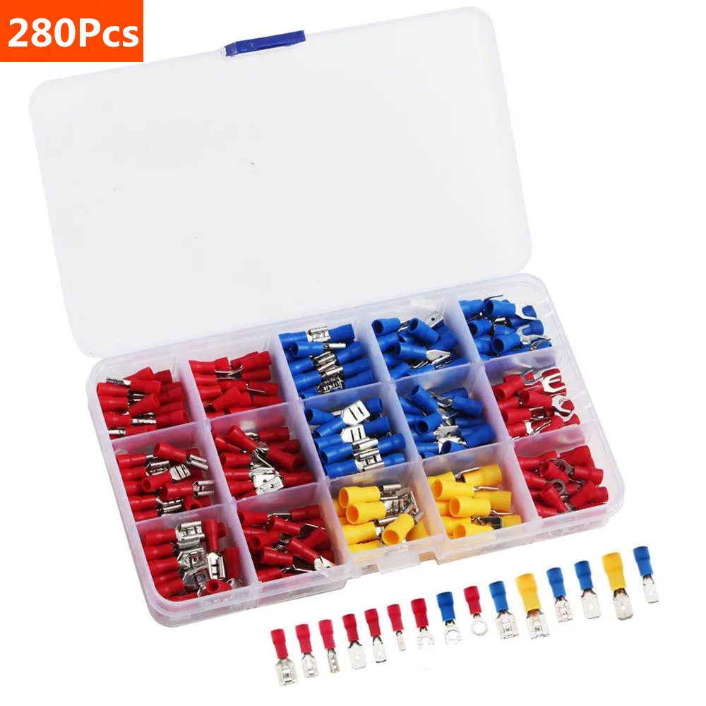 Набор кабельных наконечников 280 шт.компл., набор изолированных плоских проводов с разъемами Мама и папа для электрических проводов, набор обжимных клемм