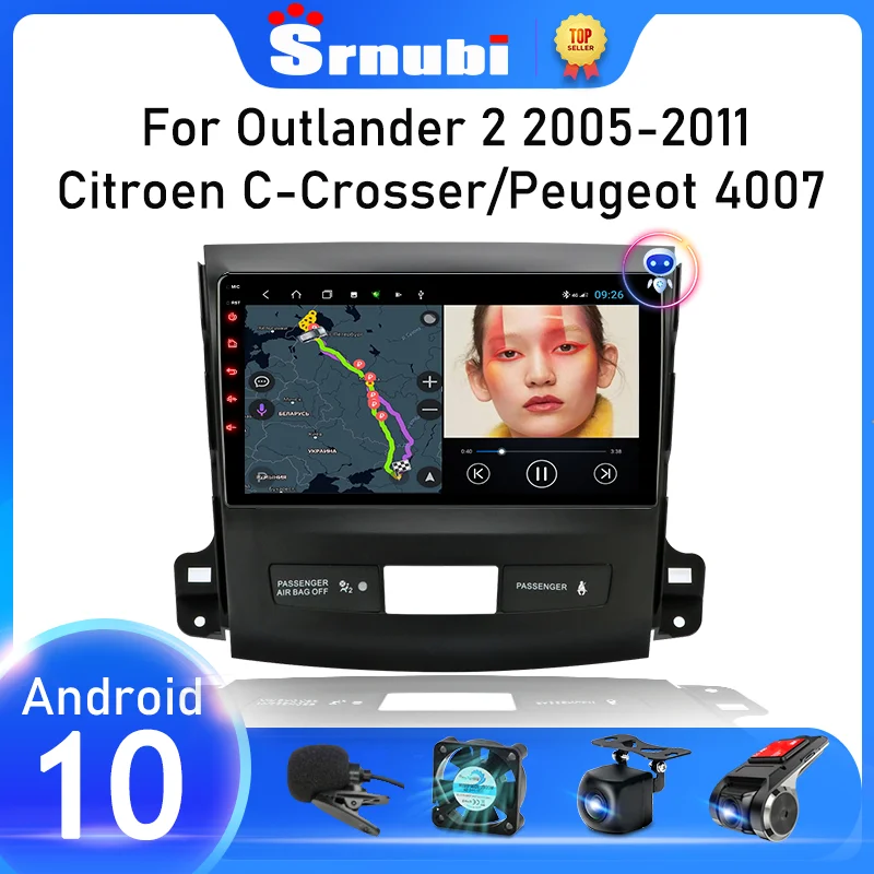 Srnubi Android автомобильный радиоприемник Multimidia для Mitsubishi Outlander Xl 2 2005-2011 для Citroen C-Crosser 2 Din Carplay стереодинамики