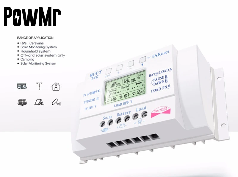 Регулятор заряда солнечной батареи PowMr, автоматический токовый прибор для управления солнечной батареей, 40 А, 1224 в, с ЖК-дисплеем и двойным временем, для дома