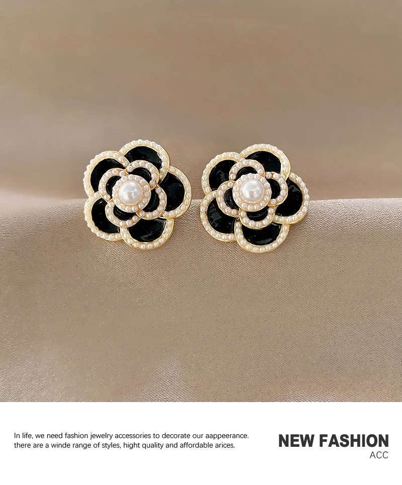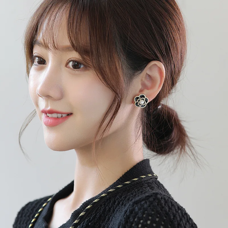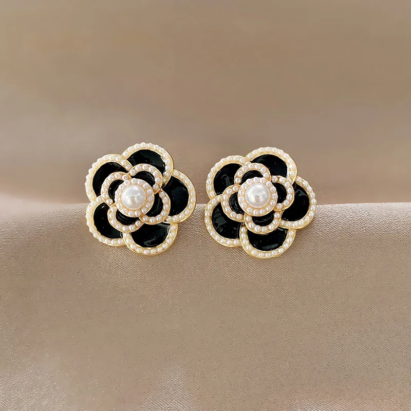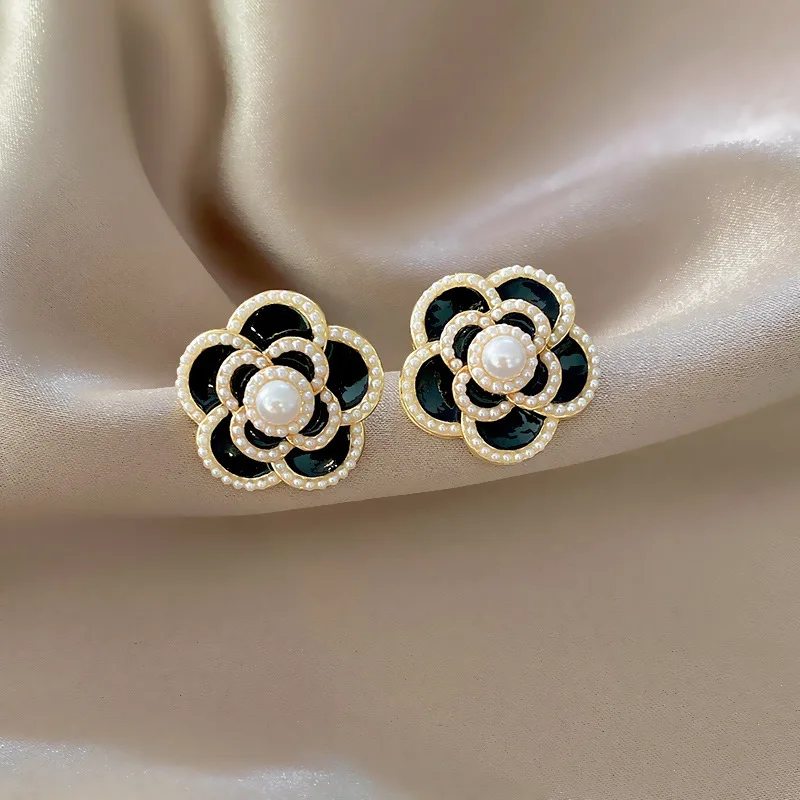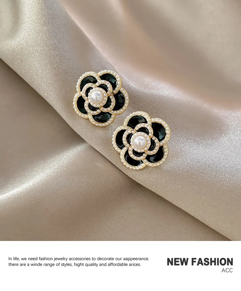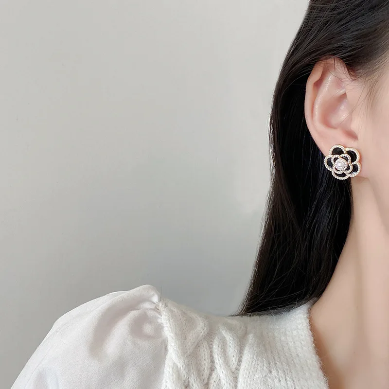 Элегантные женские классические черные серьги камелии 2021 новые модные роскошные ювелирные изделия Свадебная вечеринка