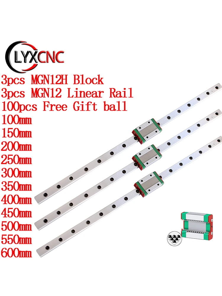 Слайдер MGN12H 3 шт. с линейной направляющей MGN12 3 шт. 100 150 200 250 300 350 400 450 500 550 мм Бесплатный подарок шарик для 3D-принтера CNC