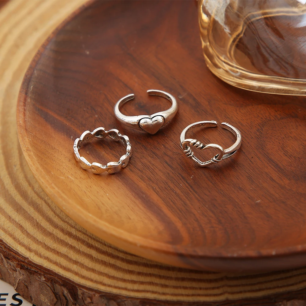 Набор колец в форме сердца в стиле панк серебряного цвета с вырезам...