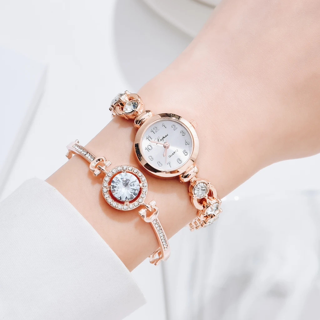 Часы наручные Lvpai женские кварцевые под розовое золото, брендовые Роскошные наручные, с кристаллами под платье, 6 шт.