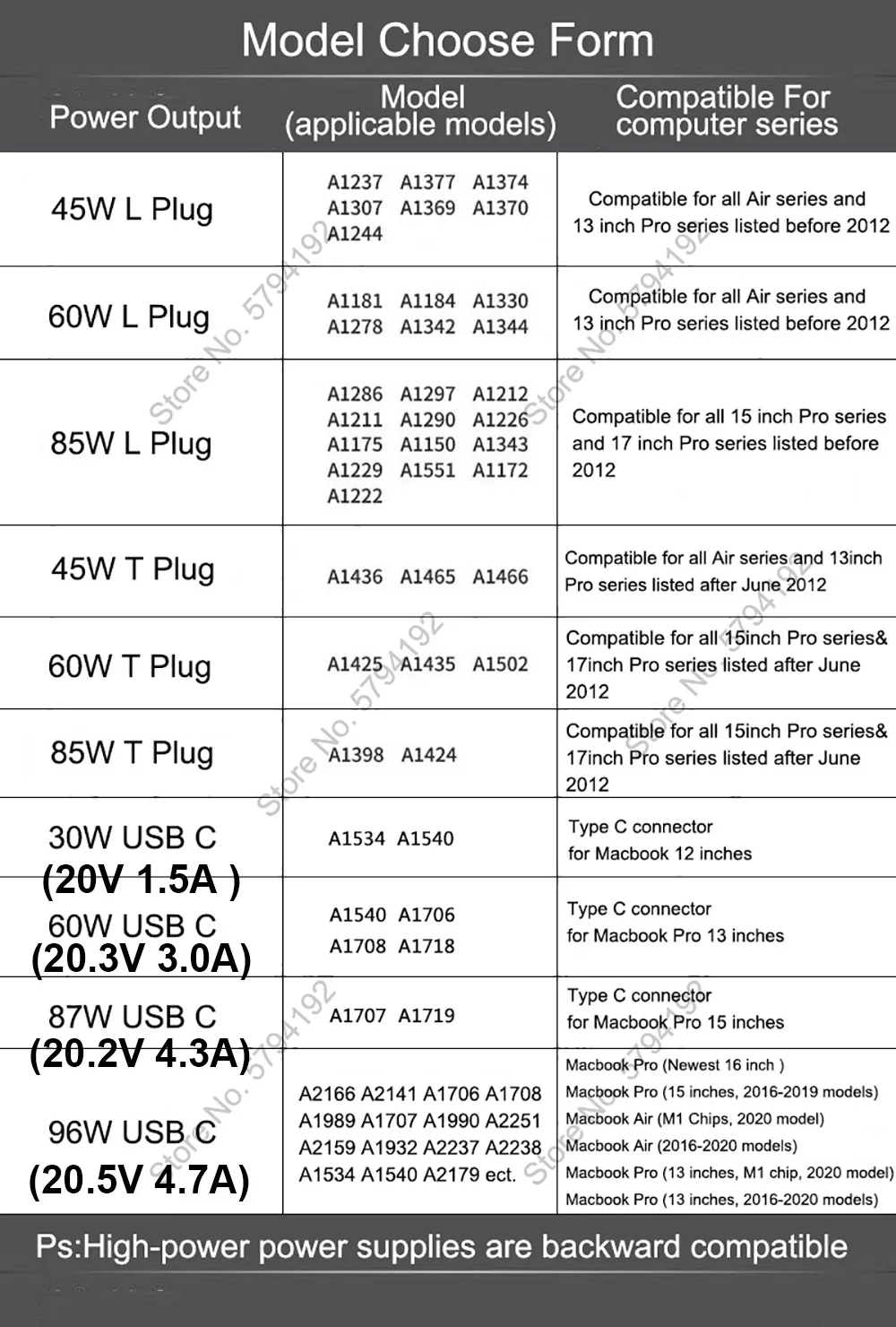 Type Number96W/61W/87W USB-C Laptop Power Adapter