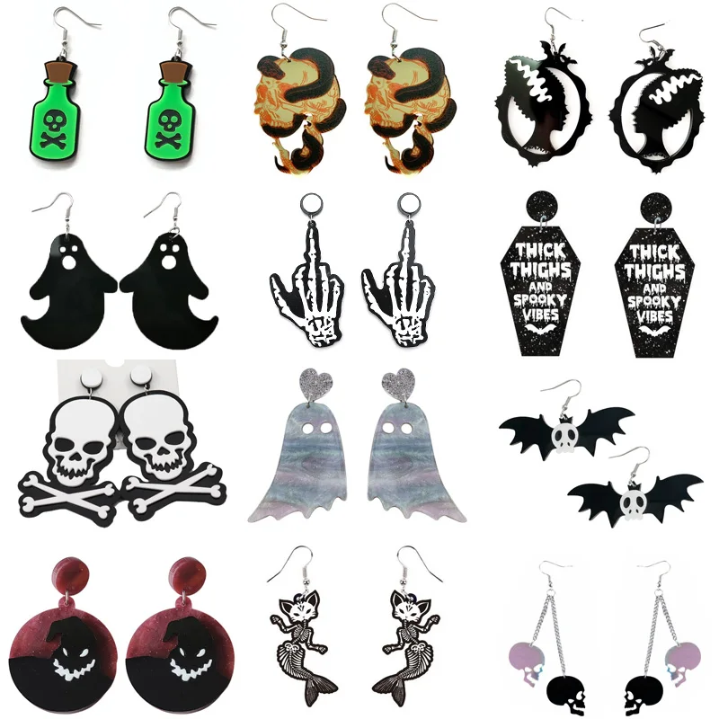 Женские Акриловые Серьги Goth Skull, блестящие серьги в стиле панк, призрак, тыква, зомби, летучая мышь, модные ювелирные украшения, подвески, подарки, Новинка
