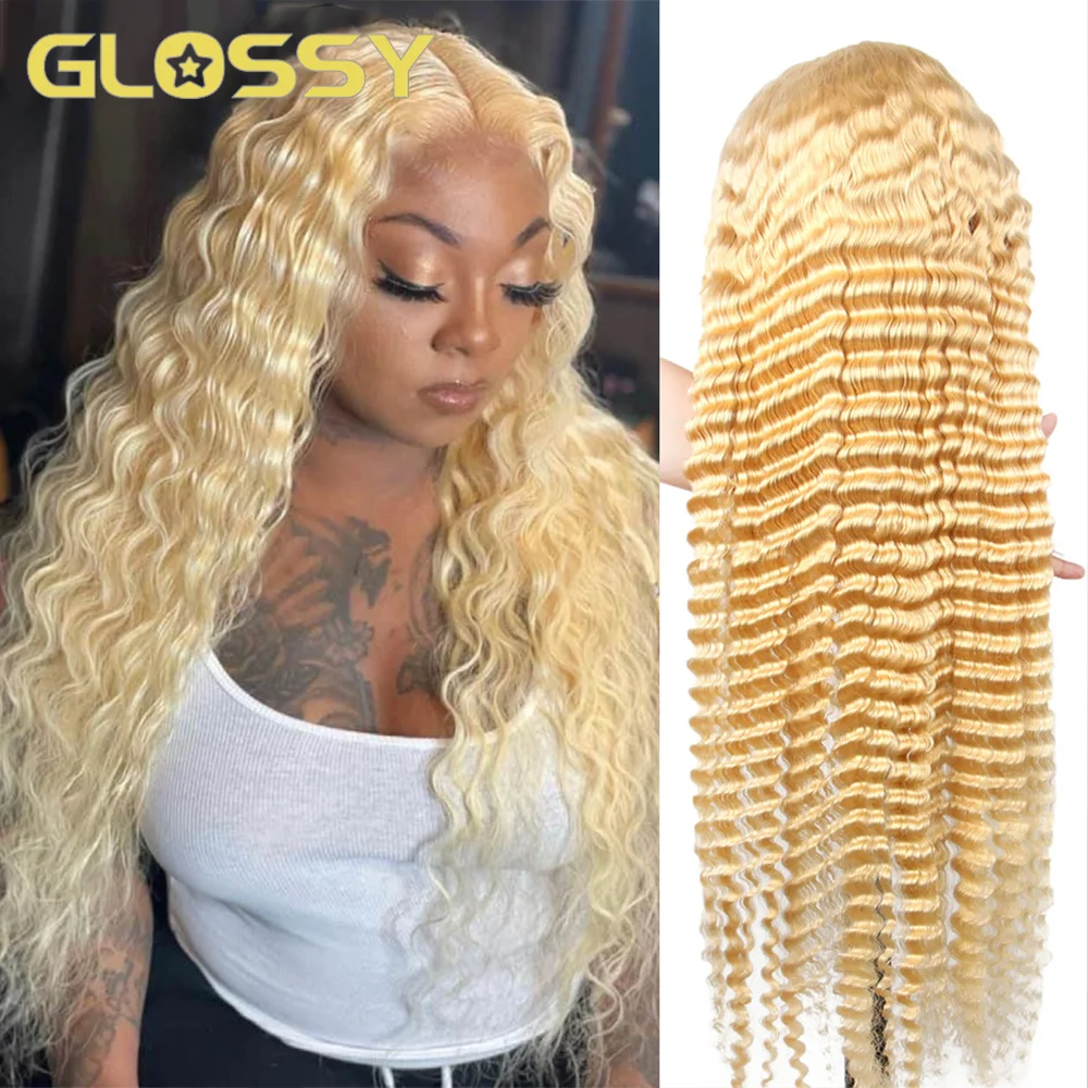 613 медовые блонд вьющиеся кружевные передние человеческие волосы парики 13x4 фронтальные парики с глубокой волной Remy 28 30 дюймов бразильские человеческие волосы парики для женщин