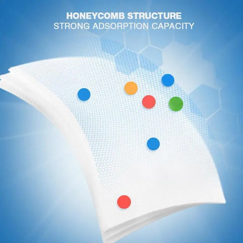 Высокий коэффициент поглощения активностиПочти вся одежда окрашивается другим обесцвечивающим красителем во время процесса стирки. Этот продукт содержит высокий коэффициент поглощения активности, может сильно поглощать Бесплатный краситель в воде, предотвращая Смешивание цвета одежды.