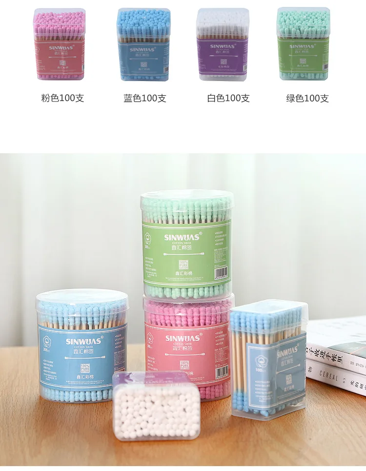 Голубые 100200 шт.коркорт. Ватные палочки с двойной головкой бамбуковые палочки ватные палочки одноразовые ватные палочки для красоты макияжа носа ушей Cleanin