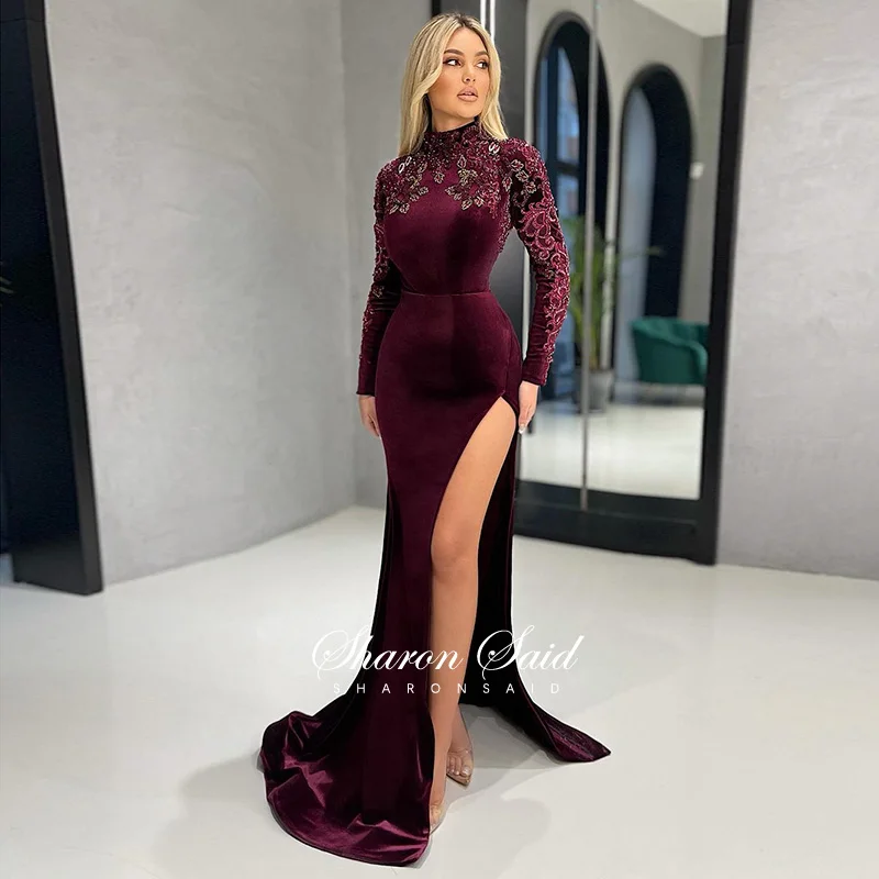 Элегантное платье-Русалка с длинным рукавом 2022 роскошные вышитые бисером Дубаи с высоким разрезом вечерние платья для женской вечеринки