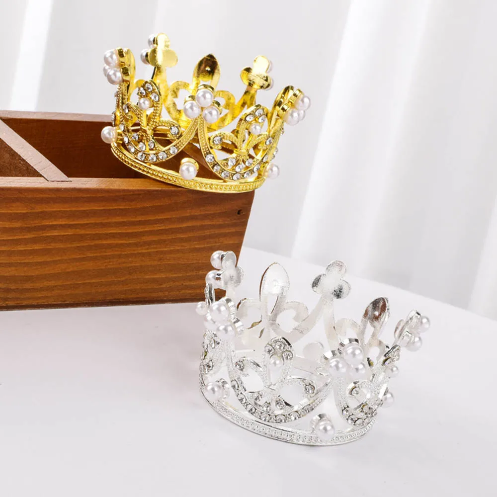Мини Золотая жемчужная Корона, топперы для торта, кавайное украшение для торта на день рождения, детский праздник, товары для свадебной вечеринки, инструменты для украшения торта