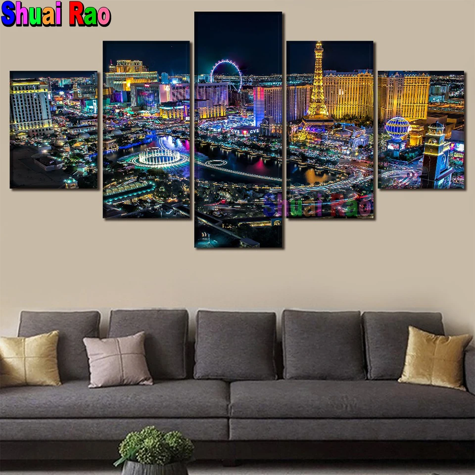 Алмазная картина в Лас-Вегасе, 5 шт., DIY хобби Алмазная мозаика, много картин, стразы, Городской Ночной пейзаж, домашнее искусство,