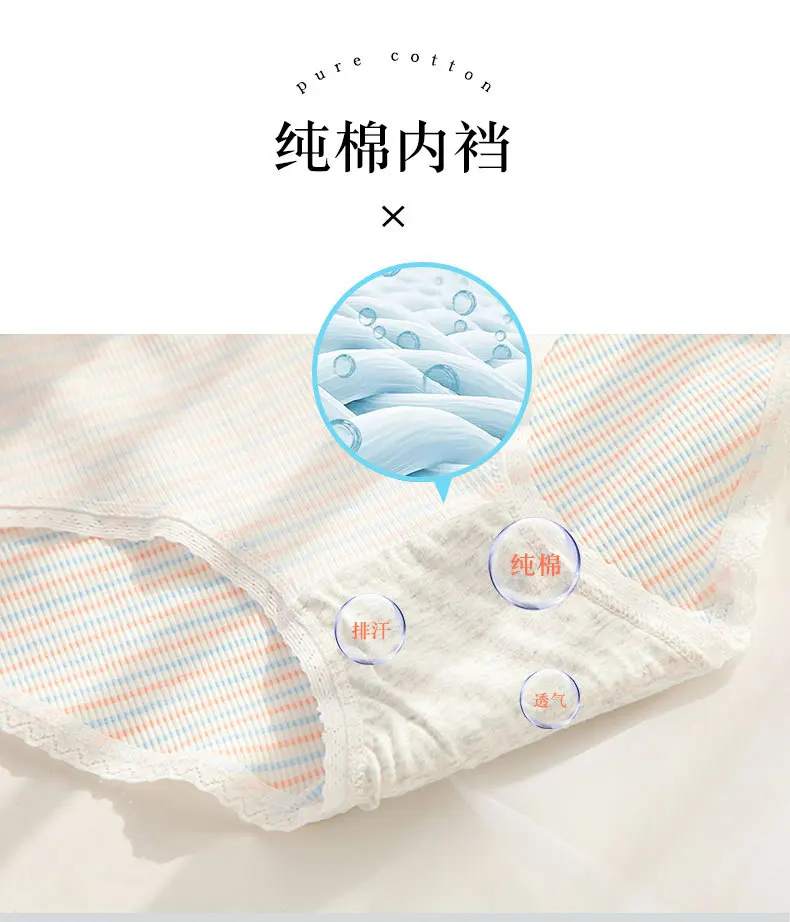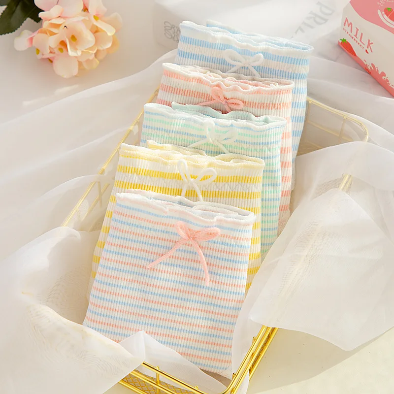 Хлопковые трусики, женские трусики, сексуальное женское нижнее белье, мягкое нижнее белье, кружевные трусики, трусики в полоску с принтом, WDC493