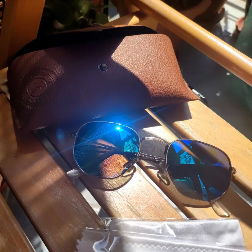 Милые очки! Красивое зеркало синего цвета с серебристой оправой. Поляризованные. Очень легкий, но прочный. Идеально подходит для пляжа. У меня есть эта модель от другого продавца, но дешевле, и хотя качество кажется таким же, они лучше и лучше сидят на лице. Упаковка довольно хорошая, хороший чехол. Продавец отправил коричневый Чехол по моему запросу. Доставка, к сожалению, не отслеживается в Италии, но это вина курьера.