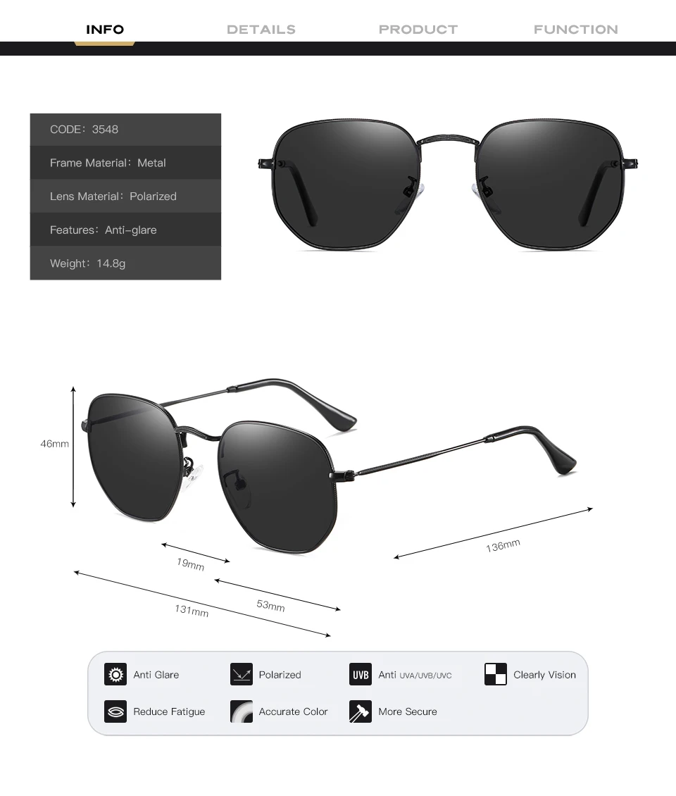 Солнцезащитные очки LM зеркальные для мужчин и женщин, модные небольшие шестигранные Поляризационные солнечные очки в ретро стиле, с металлическим покрытием, с защитой UV400