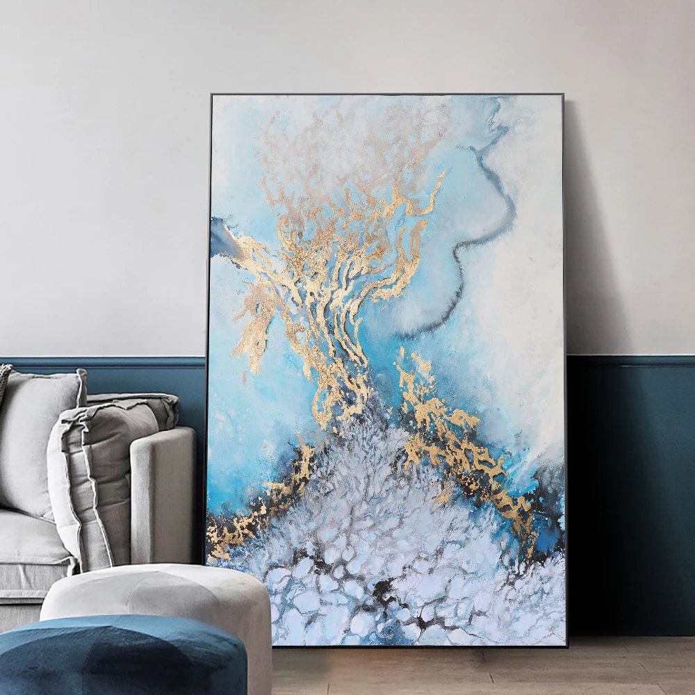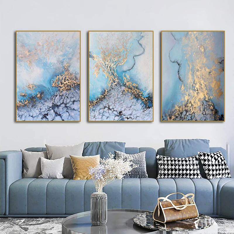 Абстрактные Художественные картины на холсте, художественные искусства, красочные, золотые, синие, скандинавские настенные художественные плакаты, картины, домашний декор
