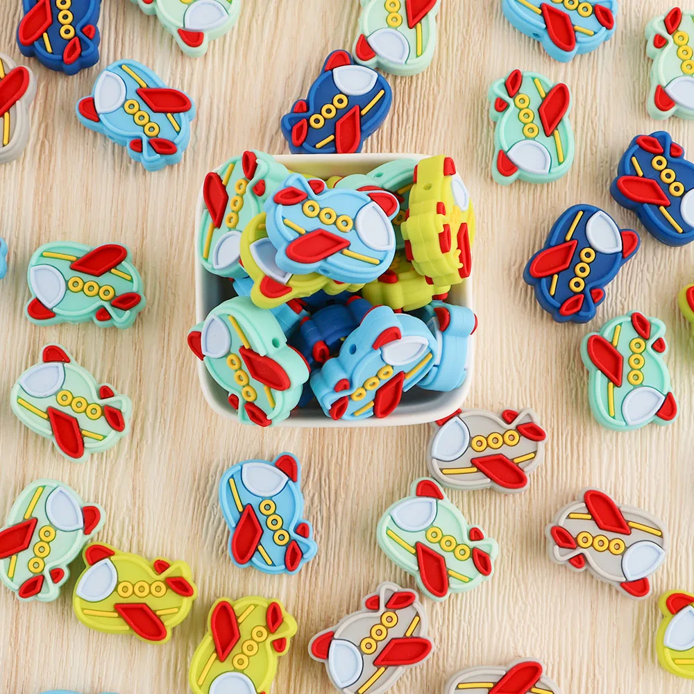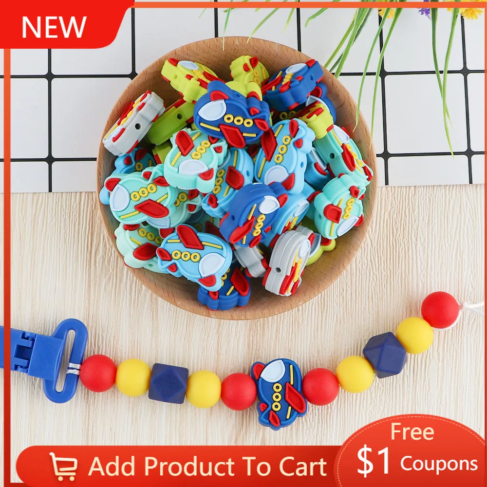 Kovict 10 шт. Детские Силиконовые бусы Мини Новый самолет пищевой Прорезыватель DIY соски цепочка ожерелье аксессуары детские молярные игрушки
