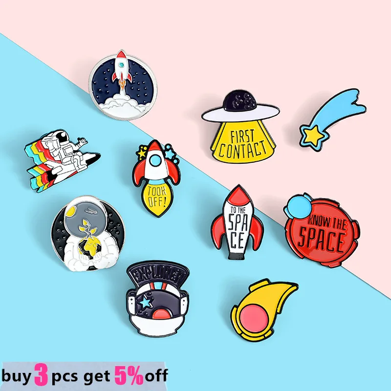 Прямая поставка, эмалированные булавки для лацканов космический корабль, Мультяшные броши, значки, модные булавки, подарки для друзей, оптовая продажа