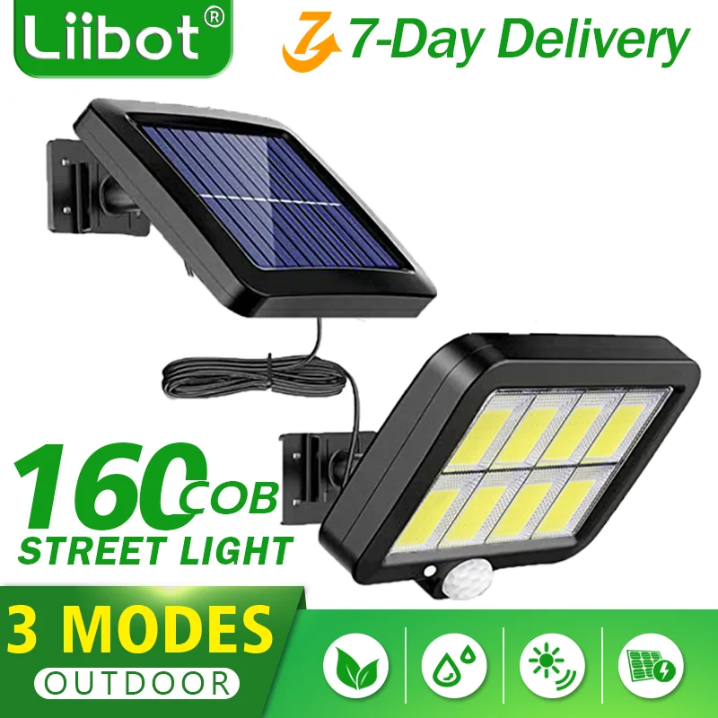 Настенный уличный светильник на солнечной батарее, водонепроницаемый светильник с пассивным ИК датчиком движения для парковки, двора, забора, улицы, сада, декоративная лампа, 160COB