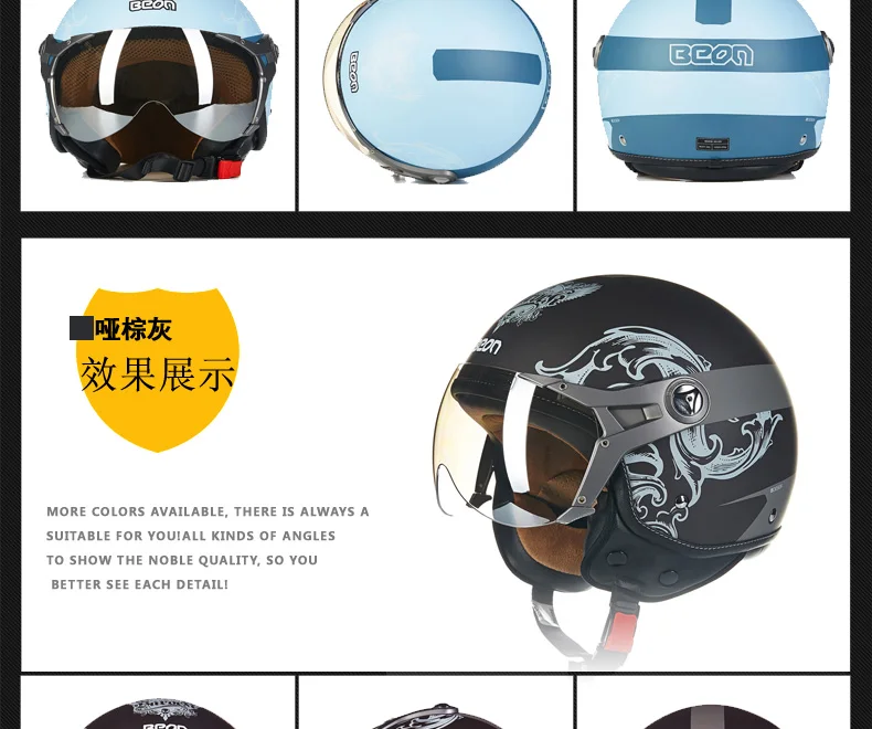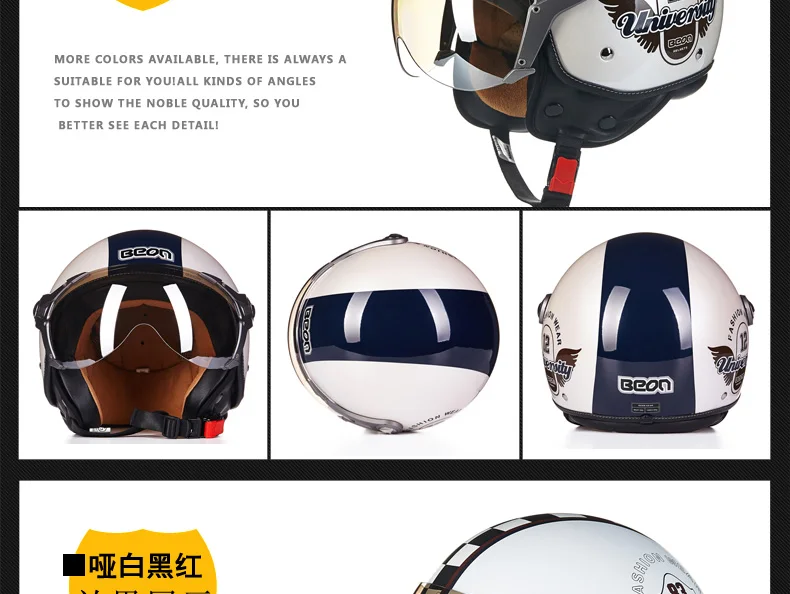 Мотоциклетный шлем BEON, винтажные шлемы с открытым лицом в стиле р...