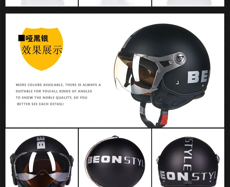 Классический мотоциклетный шлем BEON с двойными линзами 34, ретро, ...