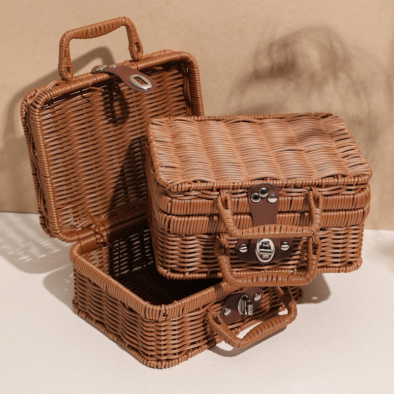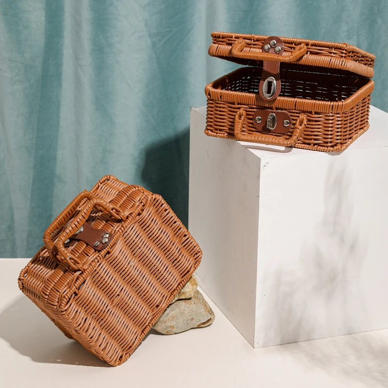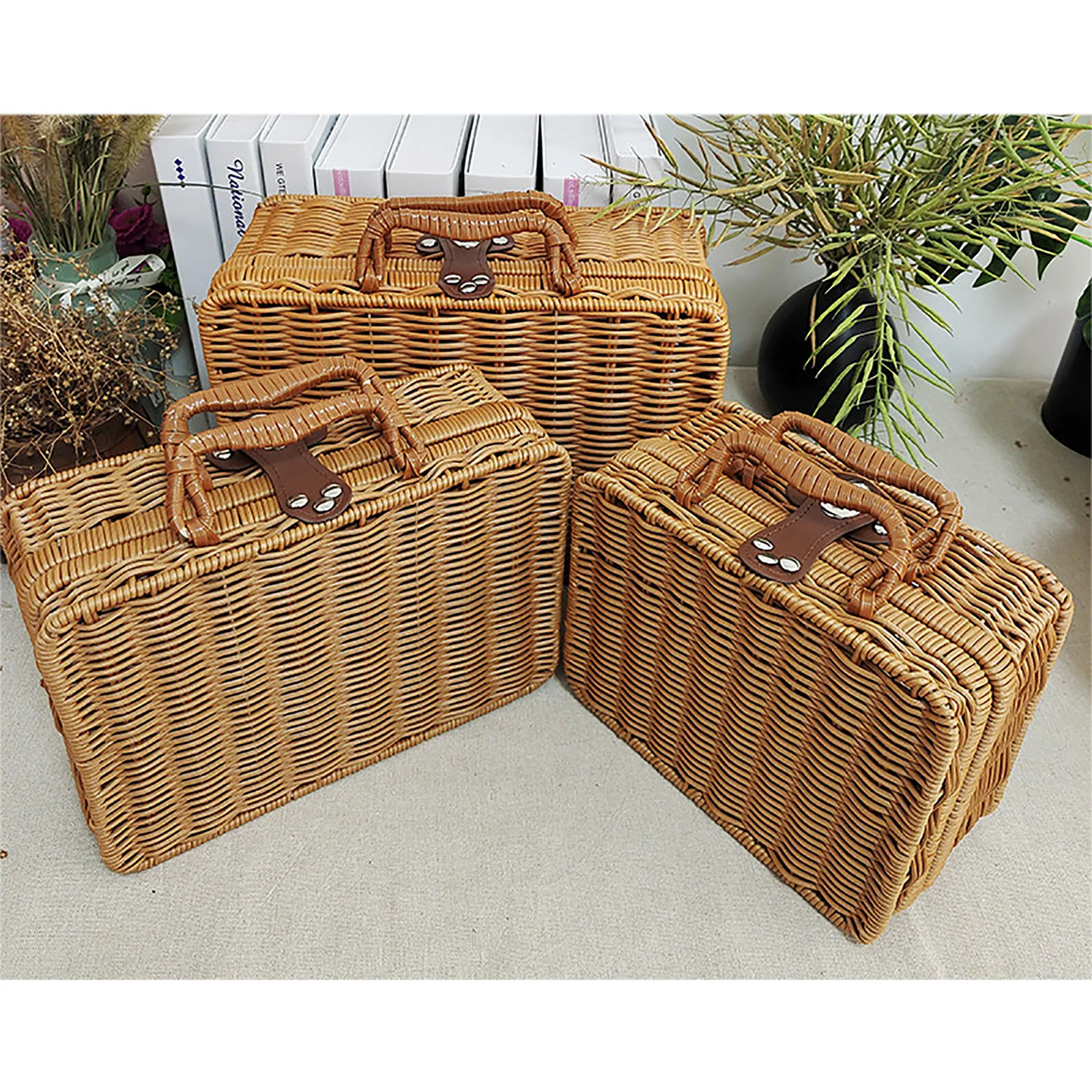 Плетеная коробка для хранения, 1 шт., с двойной ручкой, для переноски еды, фруктов, для улицы, для пикника, тропический ротанговый чемодан