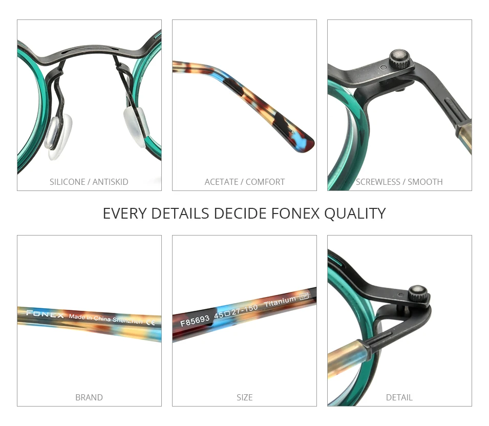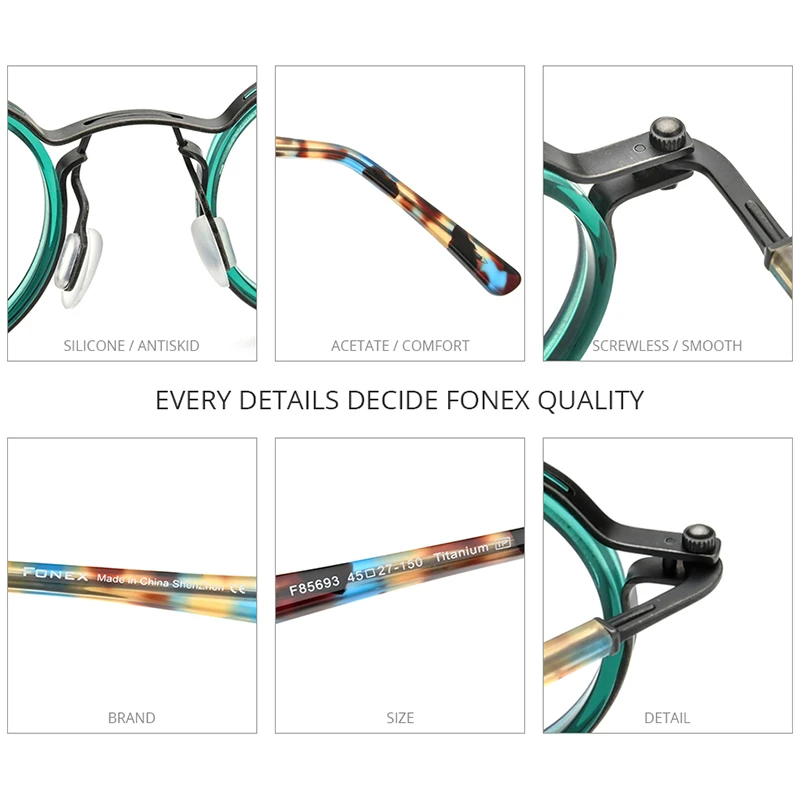 FONEX Очки мужские и женские из чистого титана в ретро-стиле, F85675