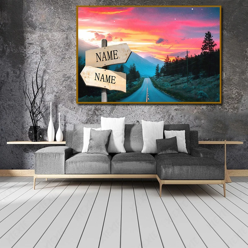 Имена на дороге, Картина на холсте, индивидуальное название, Настенная картина, персонализированная картина, подарки на годовщину, семейный Декор