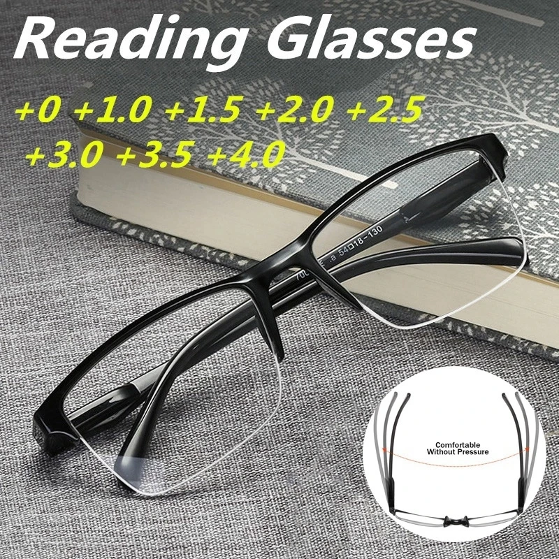 Очки для чтения с полуоправой, очки для близорукости, ультралегкие женские и мужские ретро-очки с прозрачными линзами, + 0,75 + 1,0 + 1,5 до + 4,0