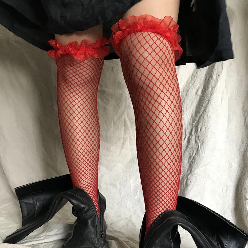 Кружевные эластичные гольфы, сетчатые колготки, сексуальные эротические чулки, женские чулки в сеточку, черные белые чулки, кавайные Чулочные изделия для косплея