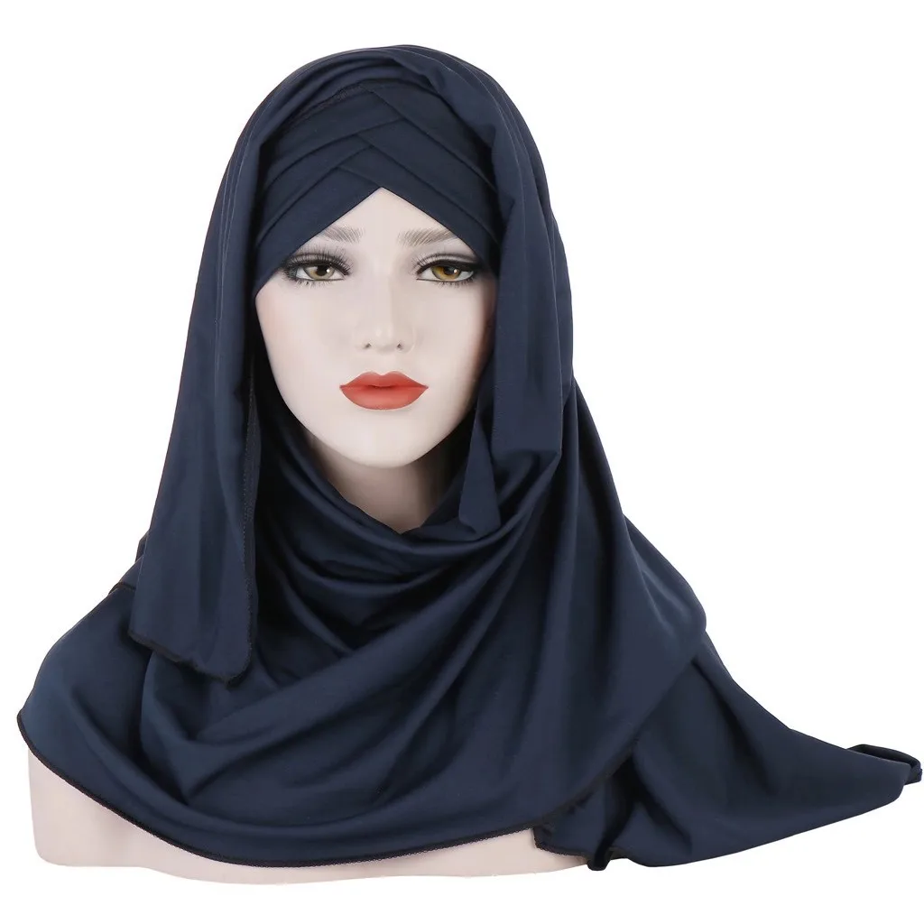 Многоцветный Мягкий Хлопок Мусульманский Платок Мгновенный Джерси Хиджаб Полное Покрытие Кепки Обёрточная бумага Шарф Исламские Шали Женщины Тюрбан Головные Платки