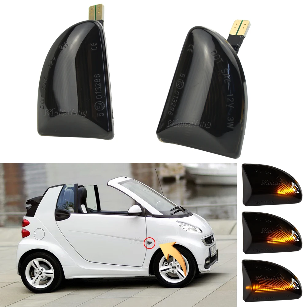2 шт. дымчатые линзы Янтарный светодиодный динамический боковой маркер светильник указатель поворота светильник s для Smart Fortwo 451 MK1 & MKII 2007-2015