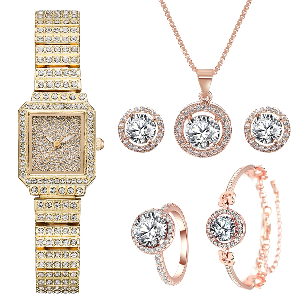 Роскошные часы для женщин, 6 шт. в комплекте, браслет, ожерелье, се...