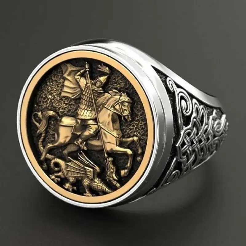 украшения 2021 бижутерия Мужское кольцо Paladin Лошадь войны, золотистое и серебристое двухцветное, модное индивидуальное высококачественное ювелирное изделие из сплава, оптовая продажа