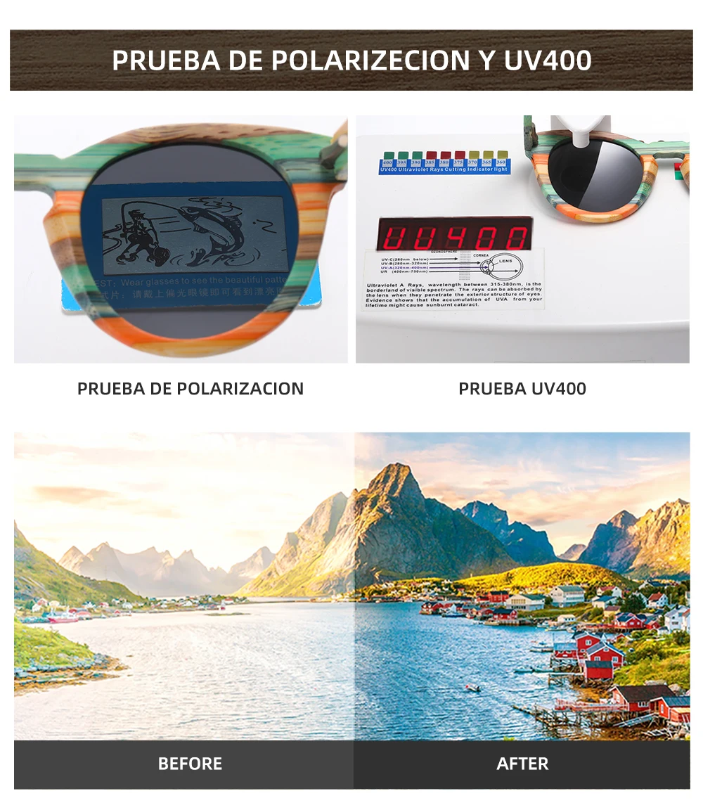 Очки солнцезащитные мужскиеженские с бамбуковой оправой, квадратной деревянной коробкой и защитой UV400