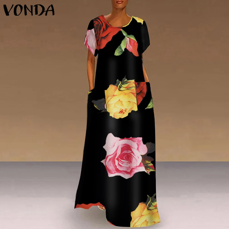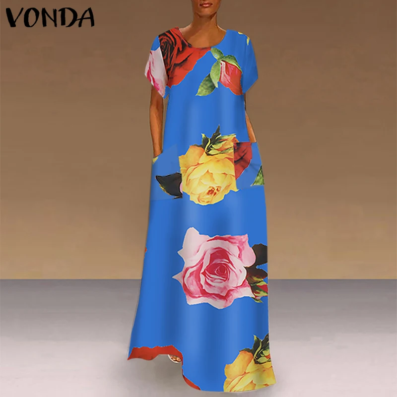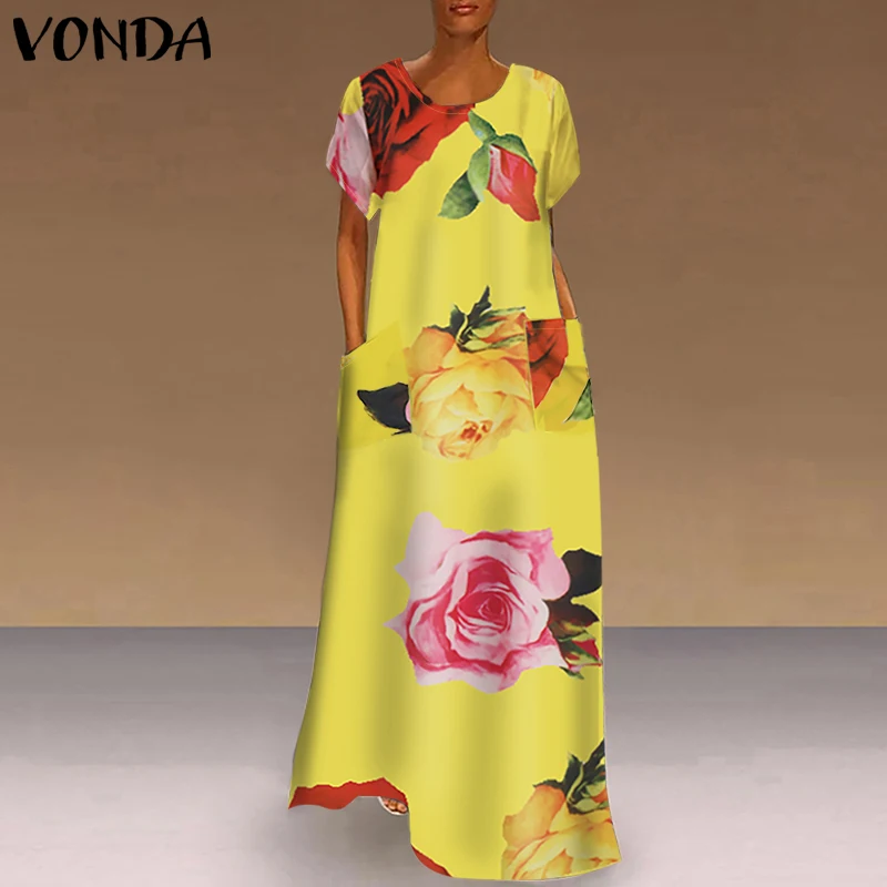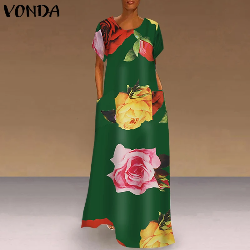 Богемное летнее платье VONDA 2022, женское винтажное праздничное платье с цветочным принтом, Модное Длинное Пляжное Платье макси с коротким рукавом, платье