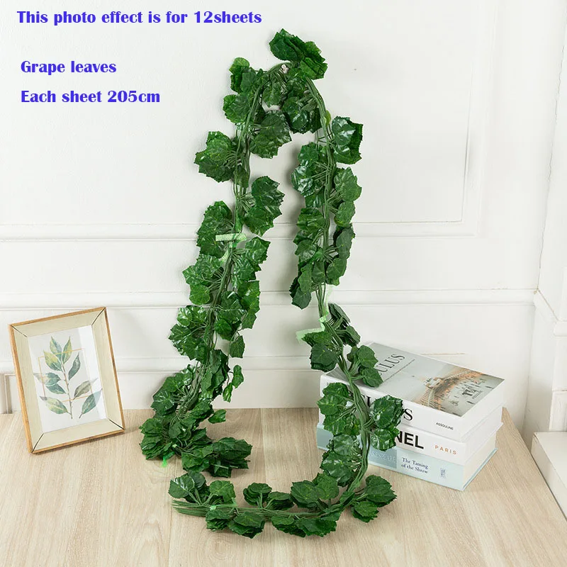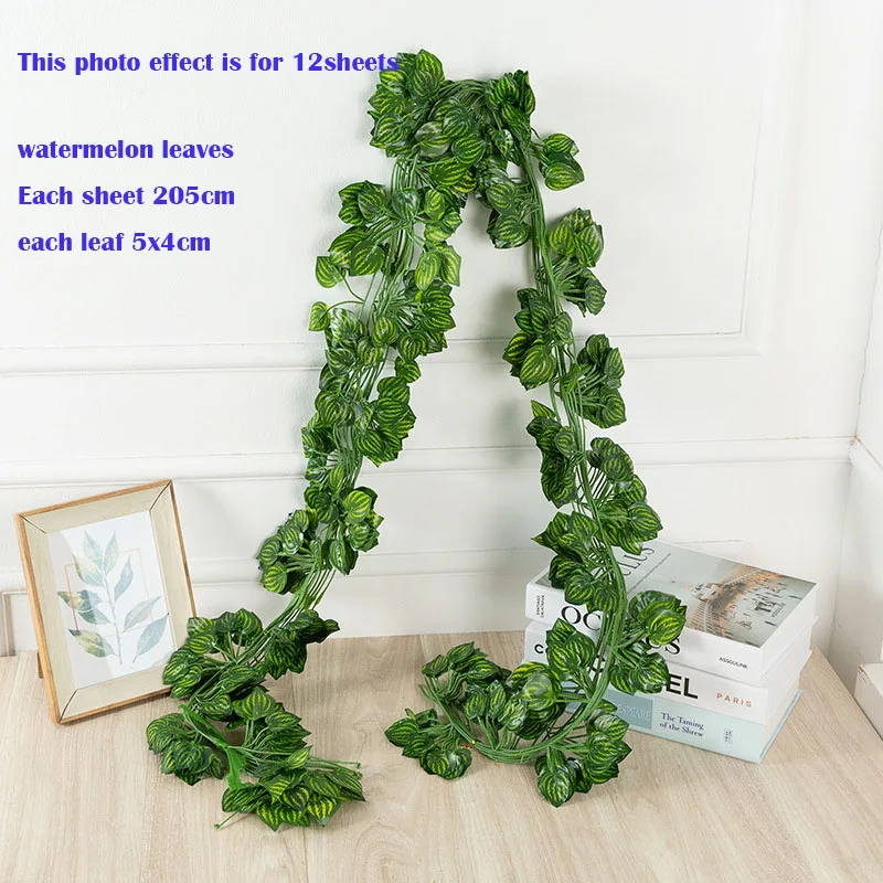 Descritpion: 3-12pcsGreen шелковые искусственные Висячие листья гирлянда 205 см Растения лоза листья для дома свадьба Вечеринка ванная комната украшение сада