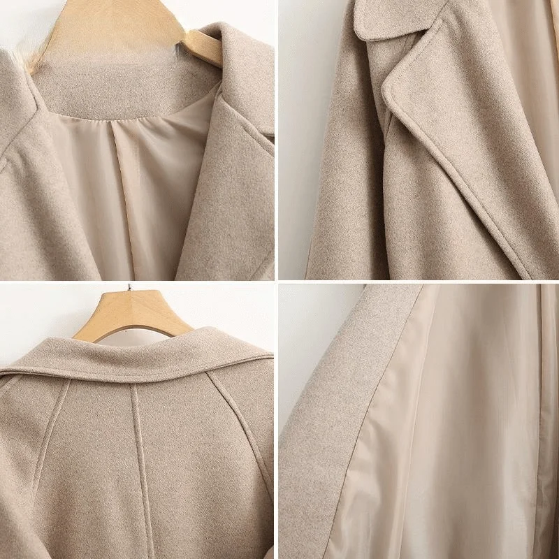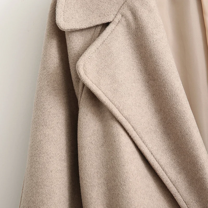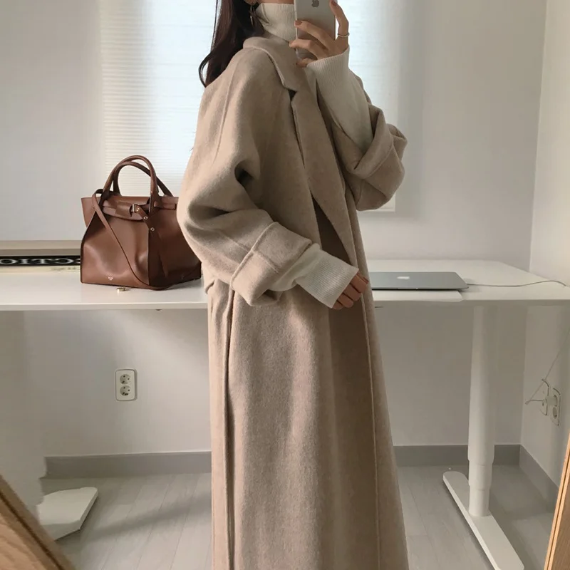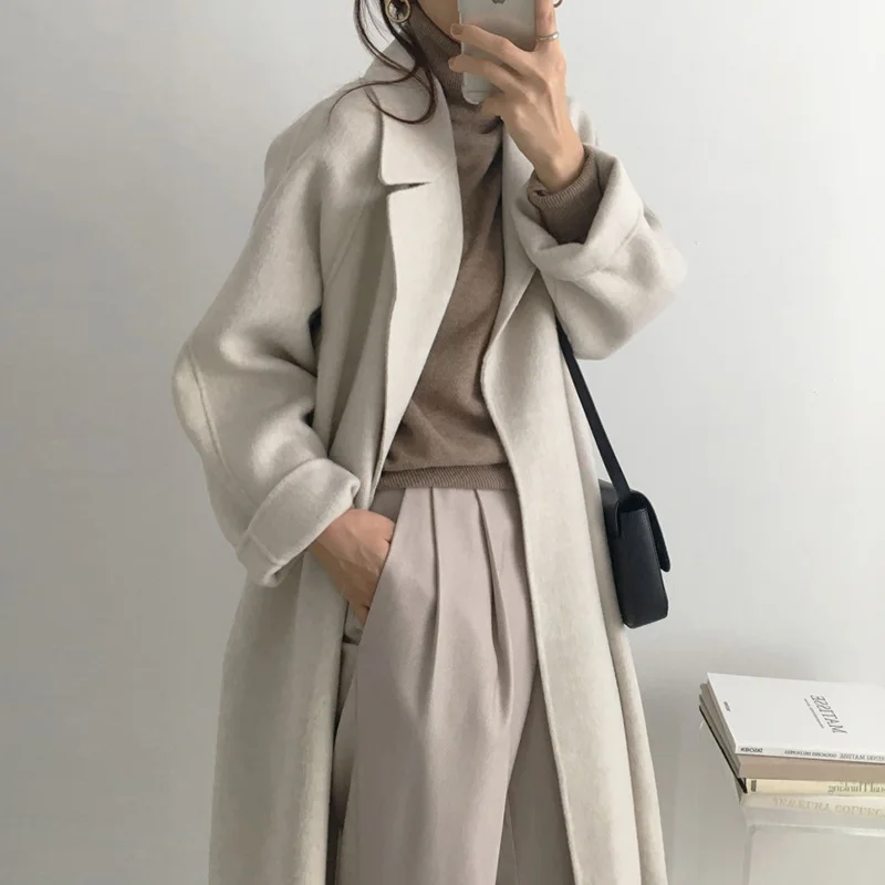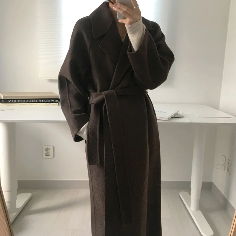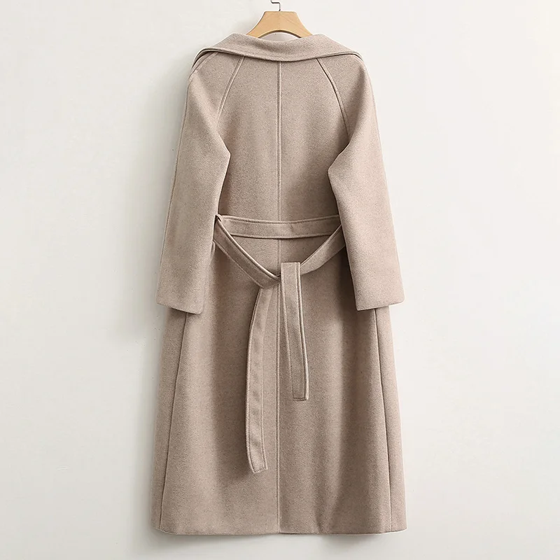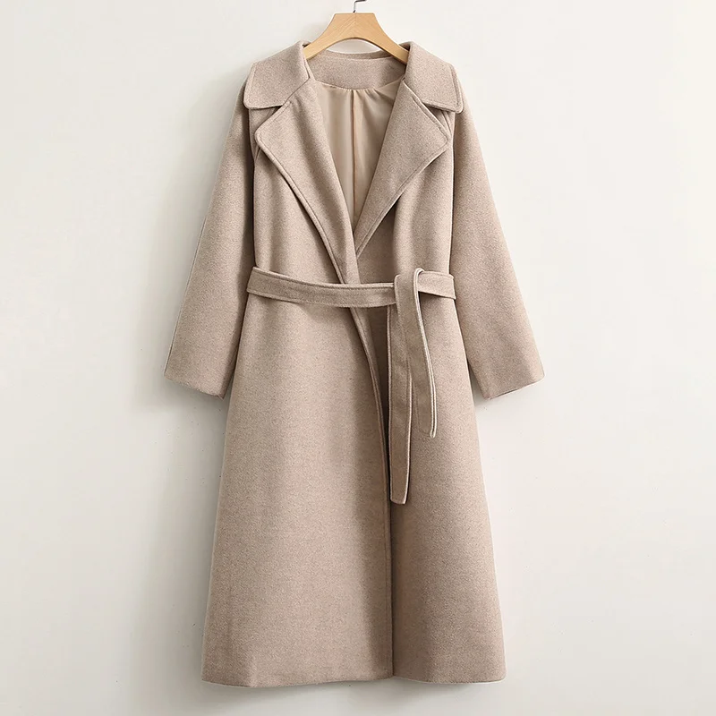 Женское шерстяное пальто с поясом, Элегантное Длинное однотонное пальто с длинным рукавом, 2021