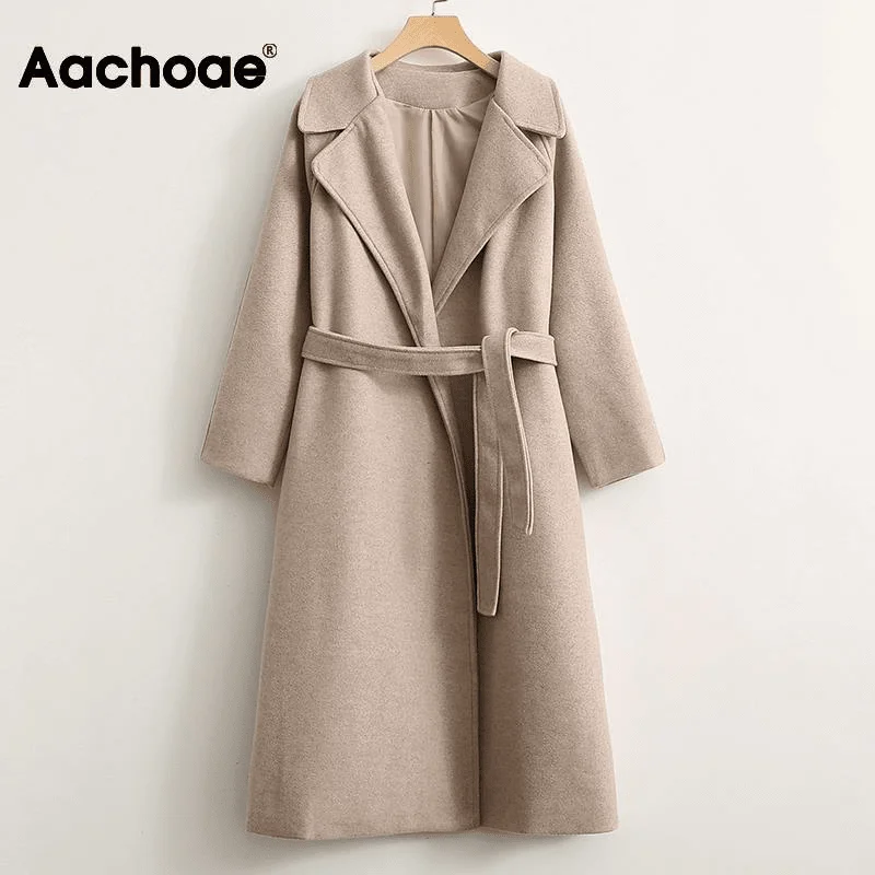 Женское длинное шерстяное пальто Aachoae, элегантное однотонное пал...